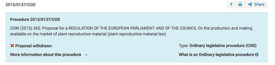 Il ritiro della proposta 2013/0137/COD, ovvero la Plant Reproductive Material Law