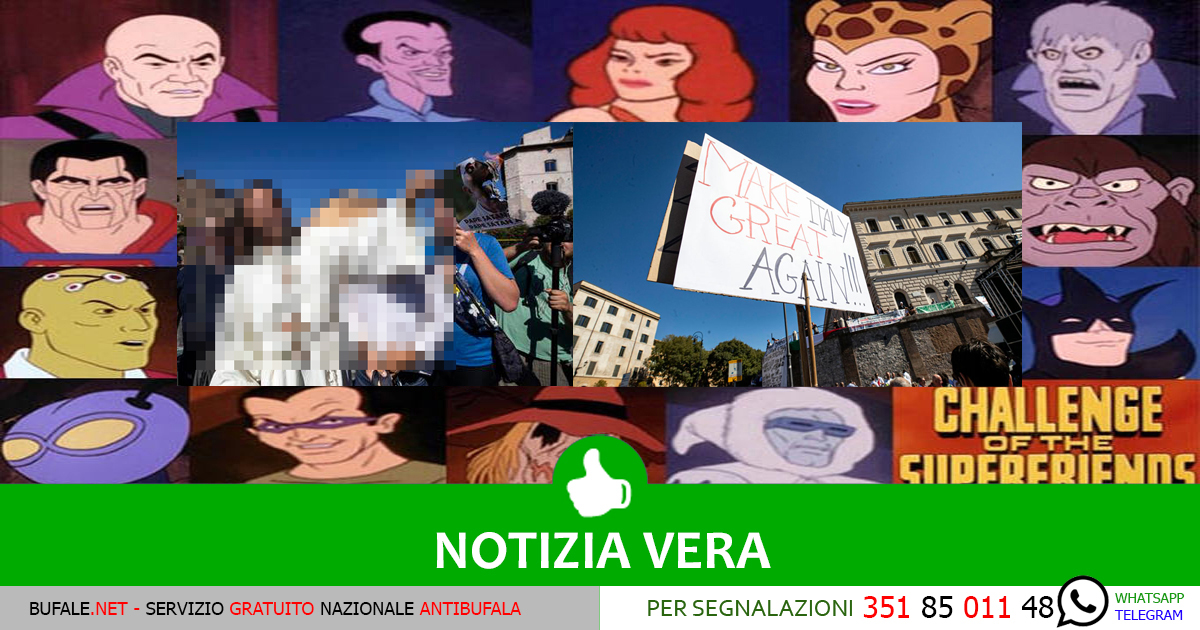 Potrete guardare liberamente video della manifestazione: vi riscontrete simboli presi dall’immaginario Trumpiano e del Patriota Q, con varianti del logo Make America Great Again.