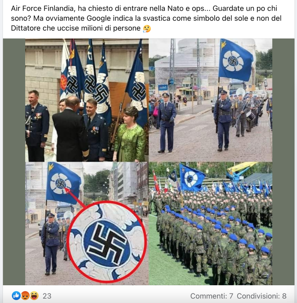 Ci segnalano i nostri contatti un post Facebook per cui “Air Force Finlandia è un’organizzazione nazista”. Nel confermarvi che si tratta di una fake news, non possiamo prendere atto di quanto ribadito in precedenti articoli di simile tenore.