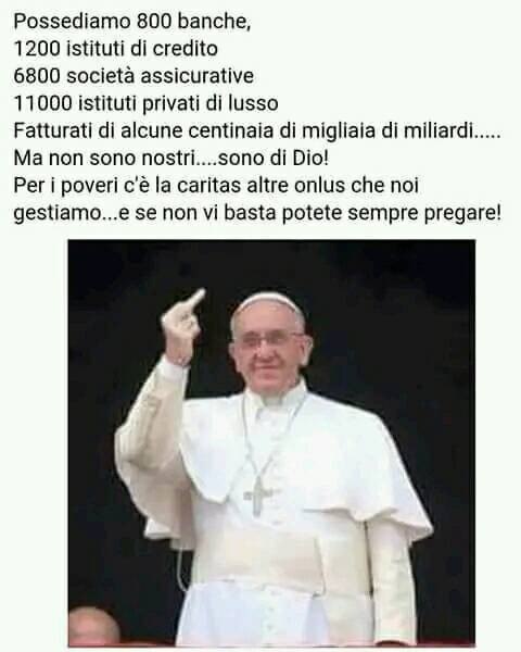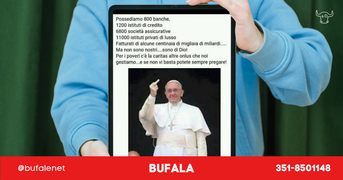 Ci segnalano i nostri contatti una foto del Papa che mostra il dito medio, arricchita da una didascalia riguardante le “ricchezze” del Vaticano. La didascalia è una reintepretazione libera delle proprietà Vaticane, di cui abbiamo parlato in un precedente articolo.