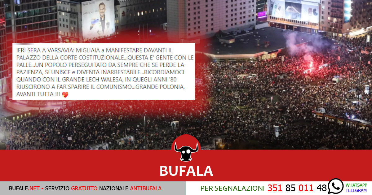 “A Varsavia protestano contro la dittatura sanitaria”, ma era una manifestazione per il diritto all’aborto