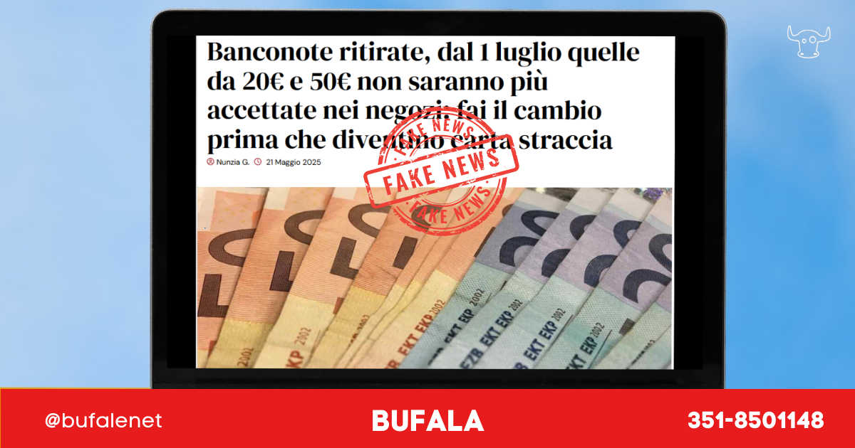 A volte ritornano: la fake news delle banconote ritirate da 50 e 20 euro è una di queste. Una bufala rilanciata, periodicamente, da una lunga serie di “portali di informazione gemelli” che appartengono tutti alla stessa persona, venendo quindi usati come megafono degli stessi contenuti per dare loro una inesistente (vedremo) veridicità.