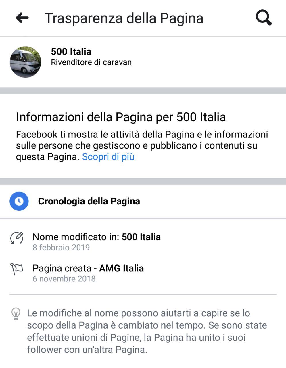 Parliamo di bufala, del resto, perché come sempre notiamo che la pagina Facebook 500 Italia, che ha creato il post, non ha altri post pubblicati. Il 6 novembre 2018 nasceva come AMG Italia e il nome è stato modificato in 500 Italia l’8 febbraio 2019.