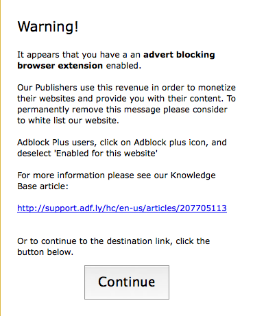 Cliccando sul Link siamo finiti prima su un un invito a rimuovere il nostro AdBlocker, il programma che impedisce l’apparizione di banner pubblicitari
