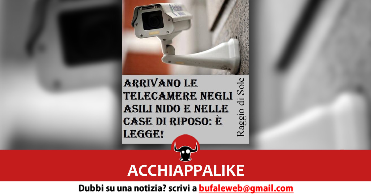 Un meme pubblicato sulla pagina Facebook Raggio di Sole nella giornata di ieri, 1° giugno 2018, comunica che l’installazione di telecamere all’interno di asili nido e e case di riposo è divenuta legge: