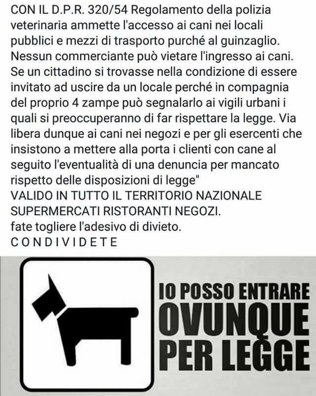 Per un riscontro da fonte autorevole è possibile consultare il testo originario della Gazzetta Ufficiale, sempre all’articolo 83. Il dibattito sulla possibilità di accesso dei cani nei locali pubblici è, in ogni caso, sempre esistito. L’avvocato Cinzia Calabrese il 28 Maggio 2013 pubblicava un articolo sul sito Mixer Planet per rispondere a un lettore: «la legge italiana sugli animali d’affezione è molto controversa – si afferma – e l’ingresso nei locali pubblici è la parte forse meno chiara». Proprietari e gestori del locale possono però «vietare l’ingresso ad animali sporchi o maleodoranti» ed invitare ad uscire qualora l’animale infastidisca gli altri clienti. Ancora: «Vi sono però leggi regionali e regolamenti comunali che demandano la facoltà di decidere su cosa fare al gestore del locale pubblico» e si aggiunge che: «quasi ogni Comune ha provveduto a regolamentare autonomamente la materia ed è necessario fare riferimento al regolamento specifico del luogo in cui ci si trova».
