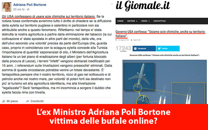 In data 20 gennaio 2016 l’ex ministro delle Politiche Agricole, Adriana Poli Bortone, ha pubblicato sul suo profilo Facebook il seguente post: