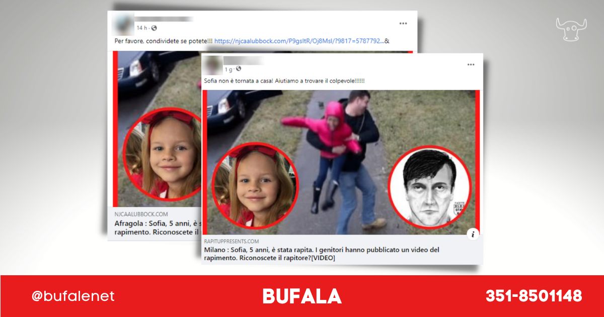 “Afragola: Sofia, 5 anni, è stata rapita“, questa la prima parte di un articolo condiviso con una certa insistenza da alcuni utenti. Secondo il titolo, i genitori della bambina rapita avrebbero diffuso le immagini del sequestro e l’identikit del rapitore.