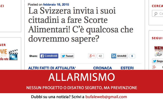 ALLARMISMO La Svizzera invita i suoi cittadini a fare scorte alimentari – bufale.net