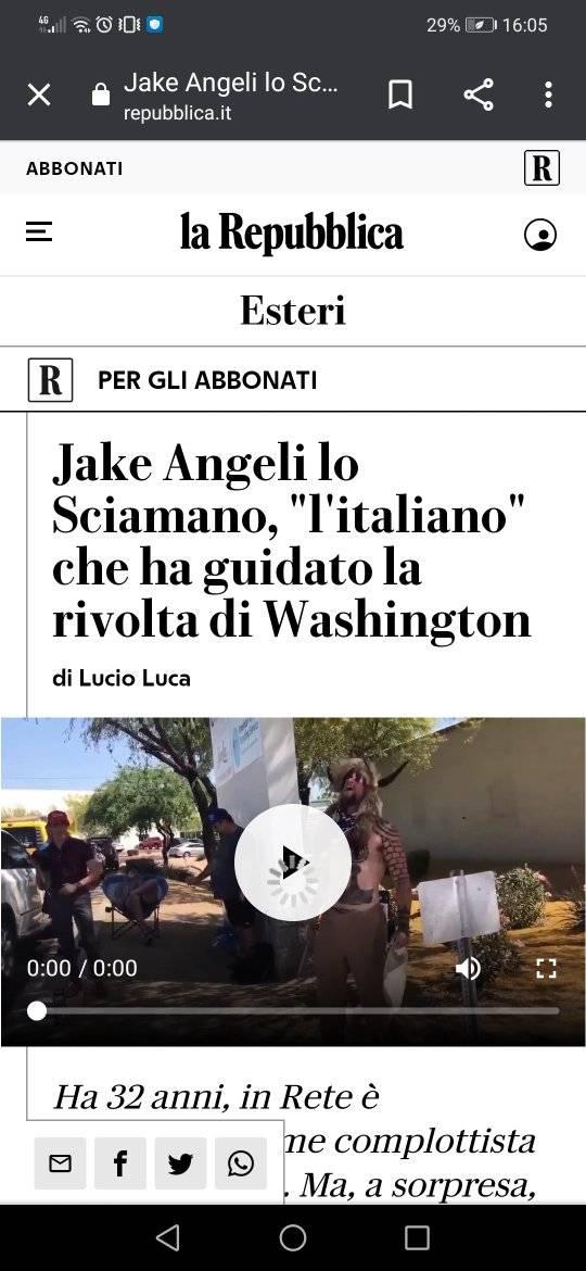 L’articolo é una amara critica ai giornali italiani che negli scorsi giorni hanno dato PER CERTE le origini del “vichingo” solo sulla base del nome, mentre OGGI (RIPETO OGGI) emerge il suo vero nome e anche che la madre faccia di cognome “Angeli” come riportato dal Dailymail: “After leaving school, Chansley’s first act was to change his name. In August 2005, he applied to replace his mother’s maiden name – Angeli – with his 63-year-old stepfather Glen’s last name. “