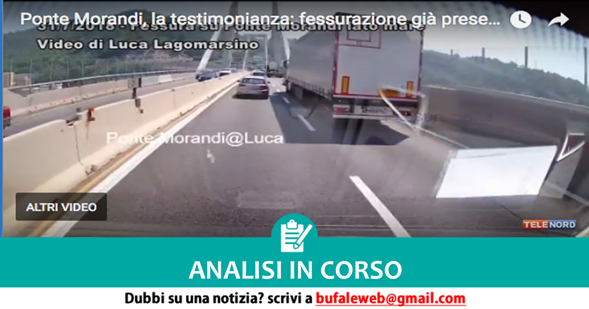 Si aggiunge inoltre che l’intervento sia stato effettuato proprio nel punto esatto del crollo. Come riportato da informarexresistere, non si tratta tanto di complotto, quanto di un allarme che forse era scattato prima di assistere al Ponte Morandi crollato. Tesi in qualche modo portata avanti anche da Affari Italiani, che ha diffuso un altro video con cui si mostrano delle crepe sul manto stradale prima del crollo. Qualcuno sapeva in anticipo? Le indagini ci diranno.