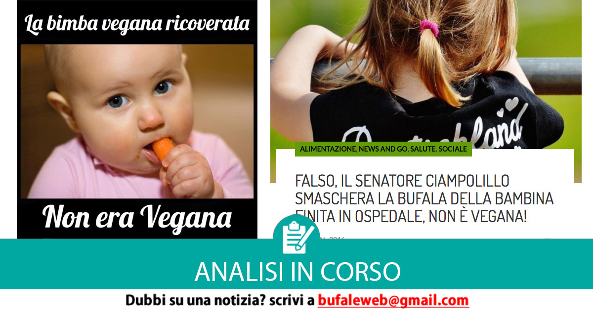 ANALISI IN CORSO La bambina vegana ricoverata non era vegana – bufale.net