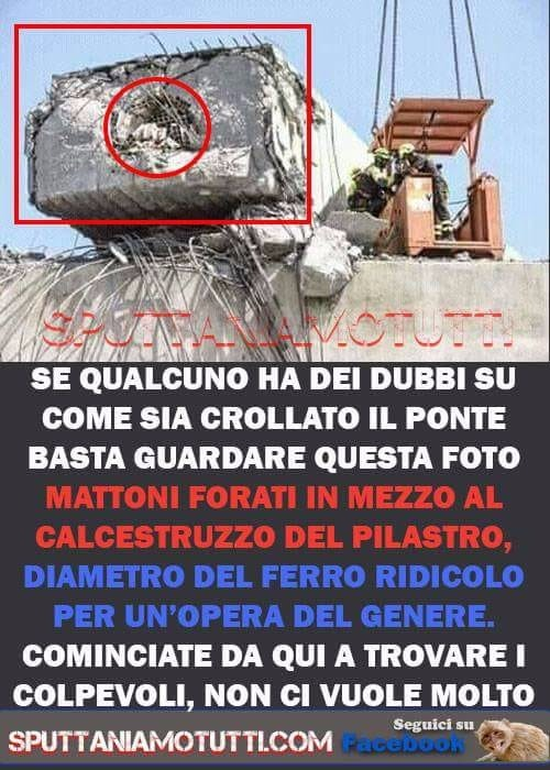 Se qualcuno ha dei dubbi su come sia crollato il ponte basta guardare questa foto.