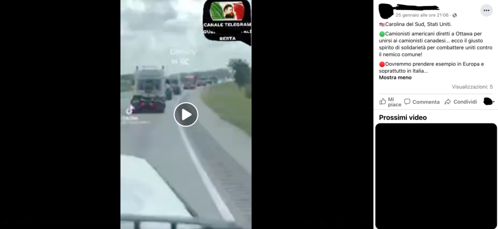 Ci segnalano i nostri contatti un altro video, questa volta ambientato in America, relativo ai “camionisti che esprimono solidarietà per i colleghi canadesi”.