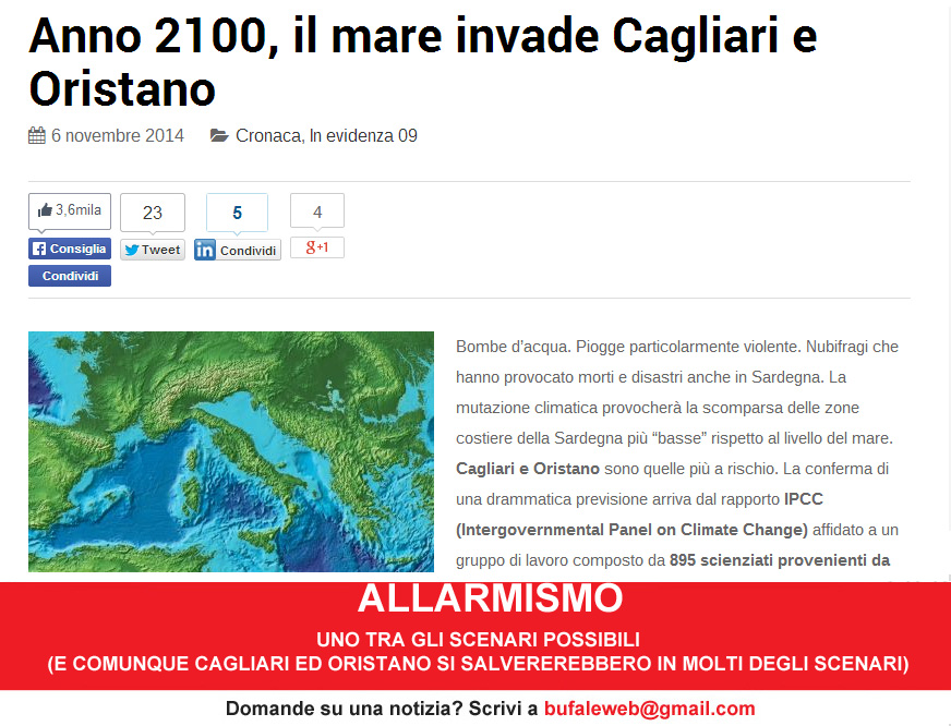 Inoltre, avrete potuto leggere come si parli di incrementi che vanno dagli 80 cm ai due metri al massimo: Cagliari è a 6 metri sul livello del mare ed Oristano a 5.
