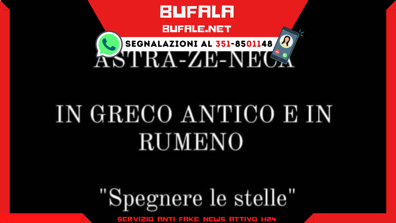 Ovviamente “Astra Ze Neca significa spegnere le stelle in Greco Antico e Rumeno” è una bufala perché “AstraZeneca”, come sappiamo, non significa assolutamente nulla in nessuna lingua del mondo.