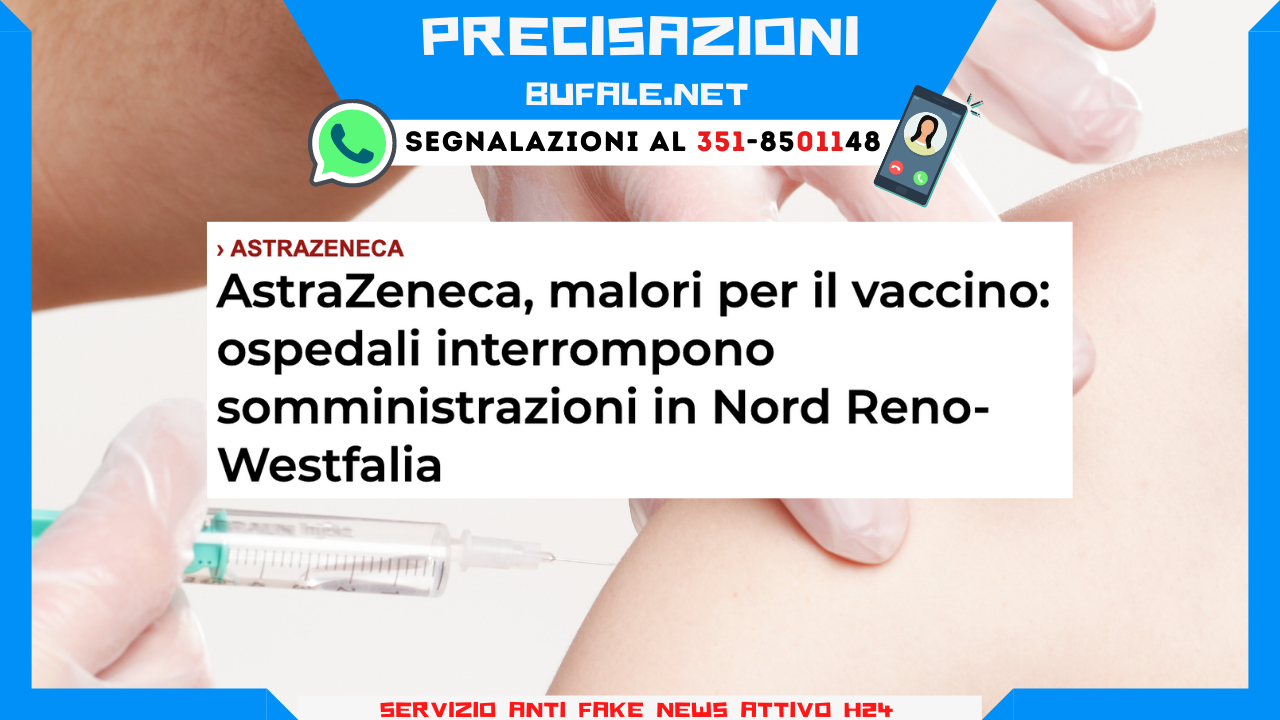 Magari è “Astrazeneca: Malori per il vaccino in Westfalia”, o “AstraZeneca, malori per il vaccino: ospedali interrompono somministrazioni in Nord Reno-Westfalia” o “AstraZeneca: vaccino sospeso in Germania, un’ondata di effetti collaterali”.