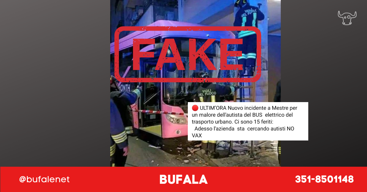 Autobus elettrico a Mestre ha un incidente, novax all’attacco