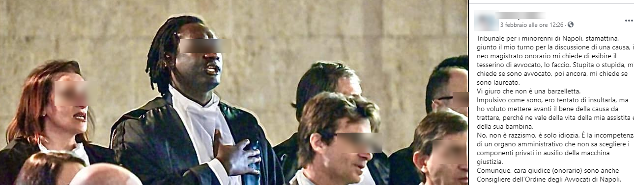 Ha colpito tutti il post pubblicato dall’avvocato di origini nigeriane H.S. in cui ha raccontato un episodio di discriminazione razziale da parte di un giudice onorario presso il tribunale dei minorenni di Napoli. Il suo racconto è diventato virale e ha riacceso il dibattito sul problema del razzismo anche negli ambienti istituzionali.