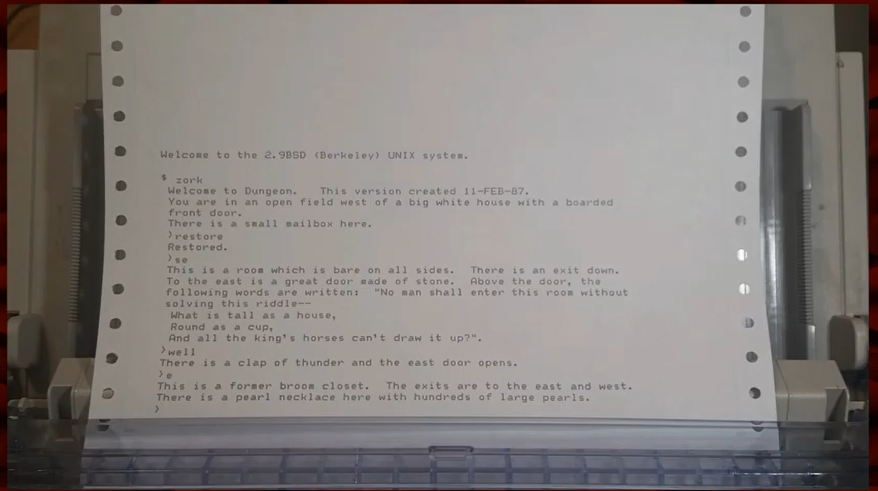 Stiamo parlando di porting crossplatform tra PC, Playstation, Xbox e Switch? No, stiamo parlando di Zork, celeberrima saga nata nel 1977 su un PDP-10 e diffusa come una moda incendiaria su tutti i computer degli anni ’80 e tutt’ora fruibile su qualsiasi cosa abbia un monitor ed una tastiera (anche virtuale). Anzi, qualsiasi cosa abbia un output testuale: una telescrivente è più che accettabile.