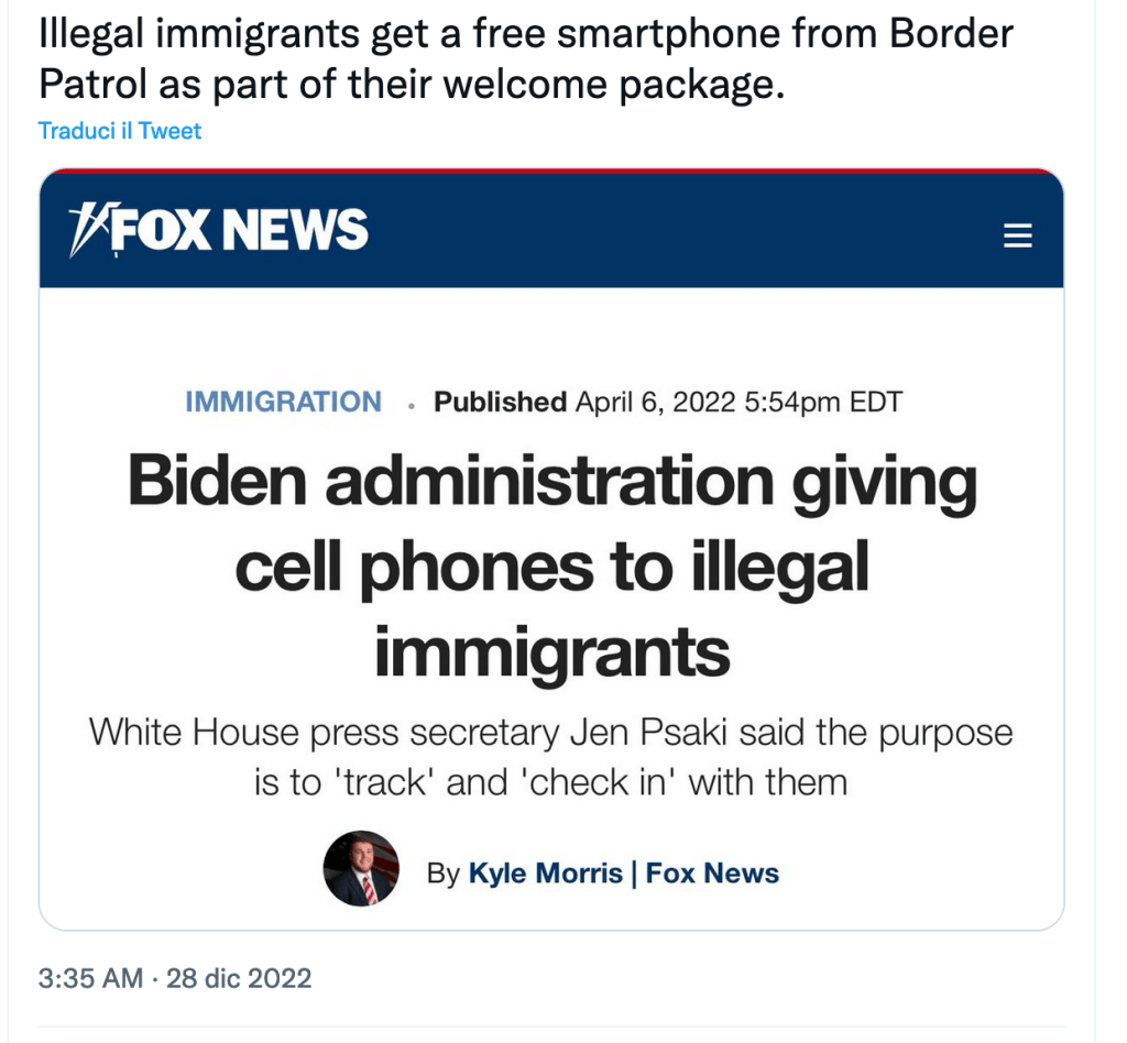 Biden regala cellulari ai migranti: la bufala sbarca in America