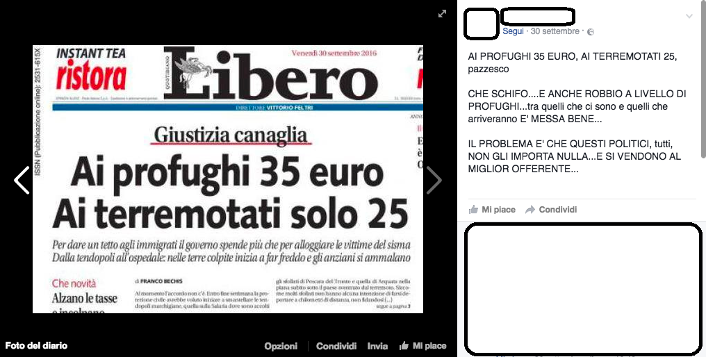 BUFALA Ai profughi 35 euro, ai terremotati solo 25, giustizia canaglia – bufale.net