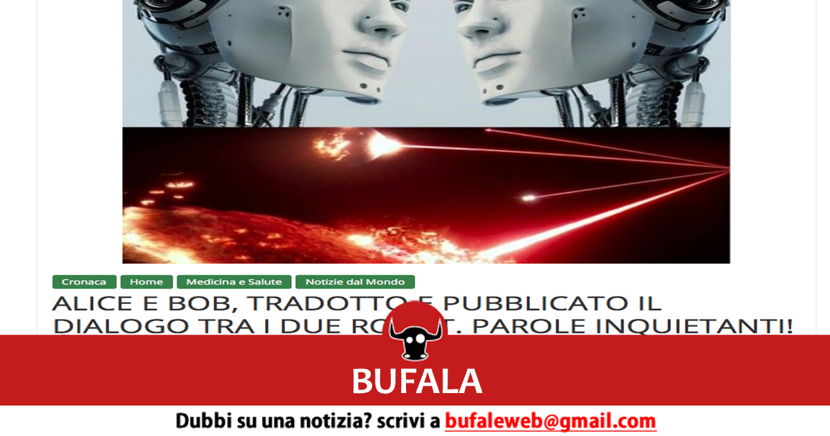 BUFALA Alice e Bob, tradotto e pubblicato il dialogo tra i due robot, parole inquietanti! – bufale.net
