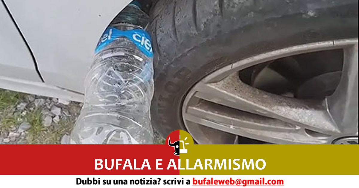 Una bottiglia di plastica messa tra il paraurti e la ruota, sul lato passeggero: quando il conducente mette in moto e si muove sente uno strano rumore, si ferma e il primo istinto è quello di scendere a controllare.
