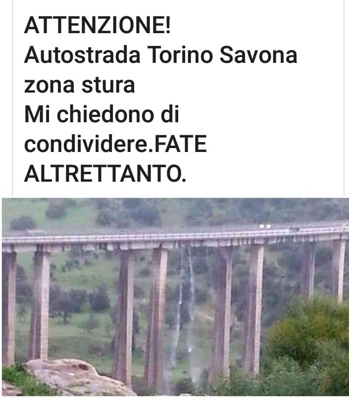 Quando parliamo dell’obbedienza passiva come un male del web, non scherziamo. In questo caso, un post pubblicato negli ultimi giorni di agosto e condiviso da più di 10.000 utenti sposta l’attenzione sul ponte dell’autostrada A6, anche se la stessa società Autostrada dei Fiori aveva rassicurato circa le condizioni e le manutenzioni operate sul viadotto in un comunicato pubblicato pochi giorni dopo il crollo del ponte Morandi.