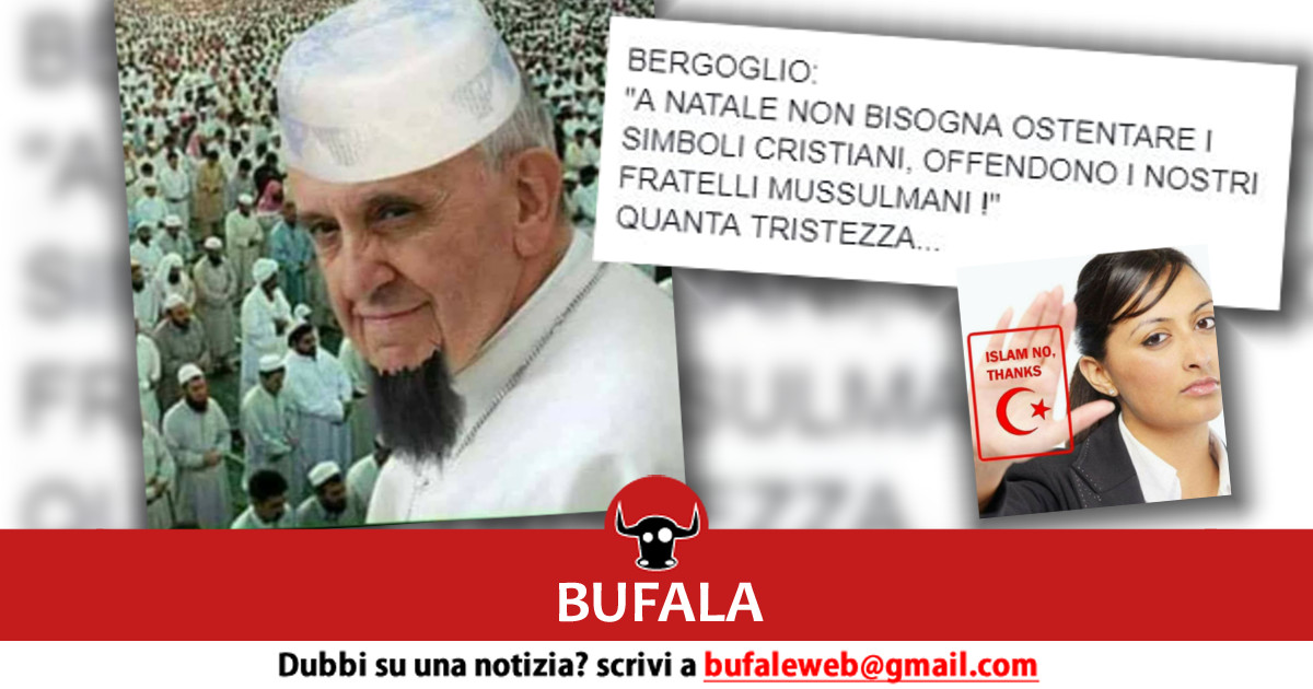 BUFALA Bergoglio: “A Natale non bisogna ostentare i simboli cristiani, offendono i nostri fratelli mussulmani”