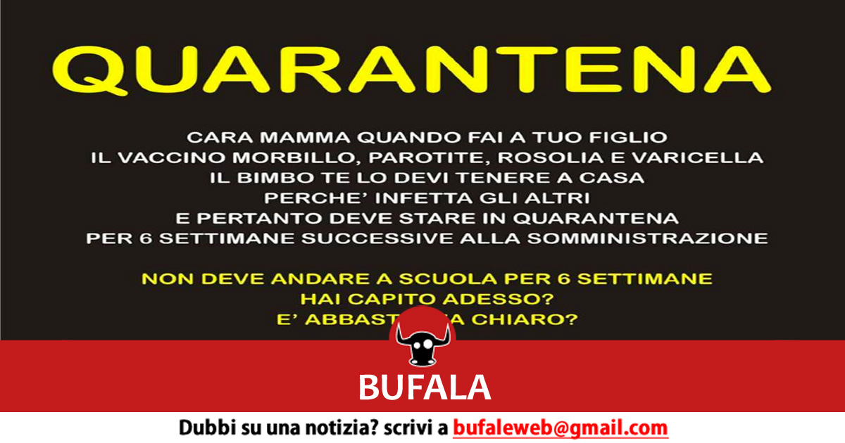 BUFALA Cara mamma, quando fai il vaccino a tuo figlio te lo devi tenere a casa per sei settimane, hai capito!?!? – bufale.net