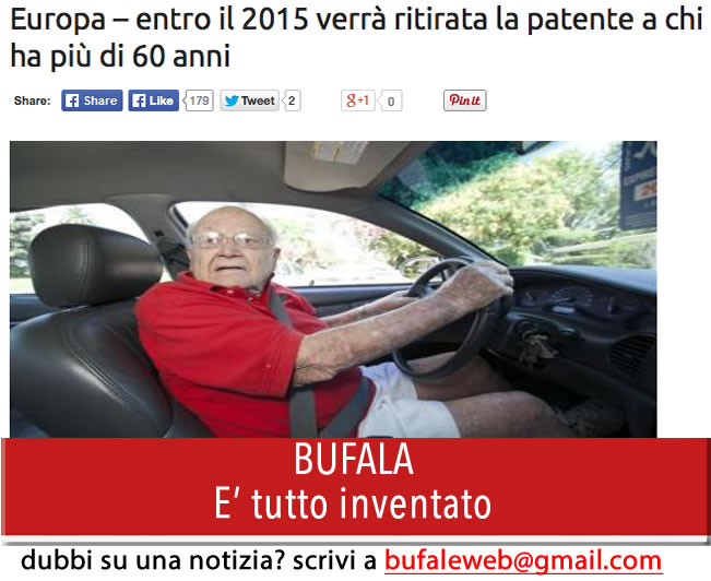BUFALA – Europa – entro il 2015 verrà ritirata la patente a chi ha più di 60 anni – bufale.net