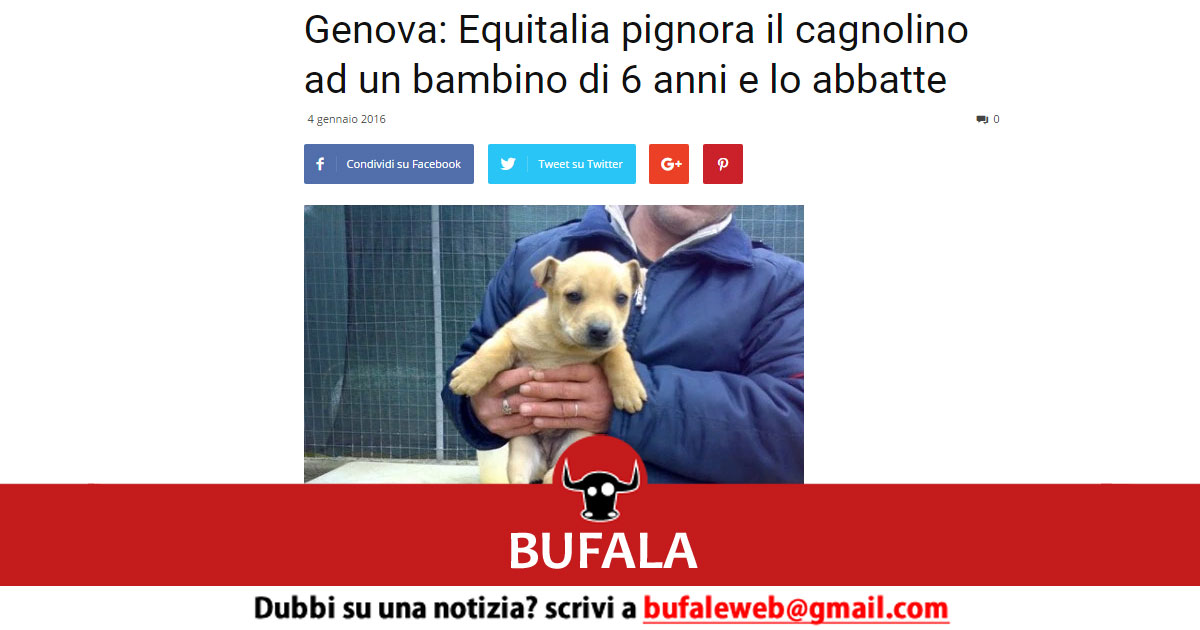 BUFALA Genova: Equitalia pignora il cagnolino ad un bambino di 6 anni e lo abbatte – Bufale.net