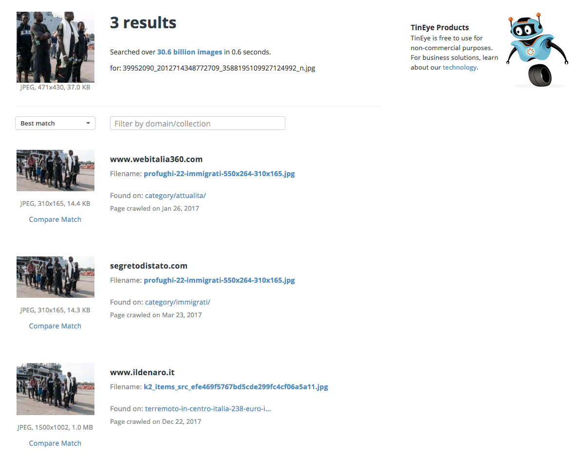 Traccia è rimasta su un motore specifico di ricerca per immagini, il famoso Tineye