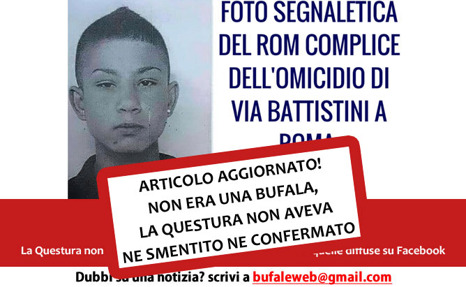 La pagina Facebook “La Destra 2.0” pubblica nella giornata di ieri, 31 maggio 2015, una presunta foto segnaletica riportante un giovane accusato di essere il rom complice dell’omicidio di via Battistini a Roma.