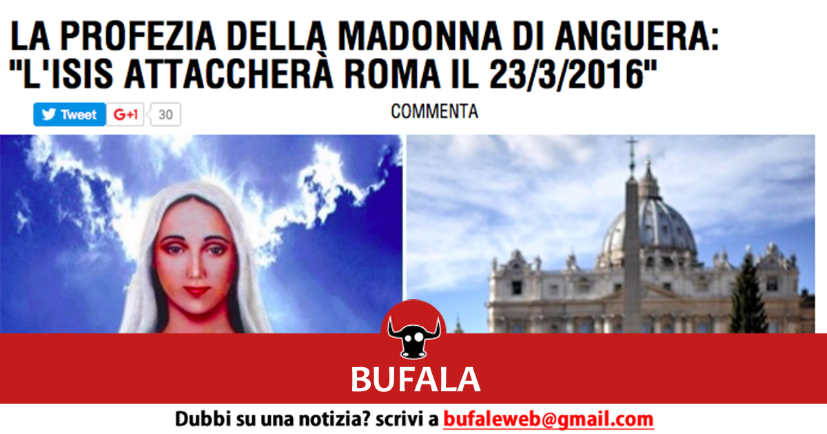 BUFALA La profezia della Madonna di Anguera: “L’Isis attaccherà Roma il 23/3/2016”