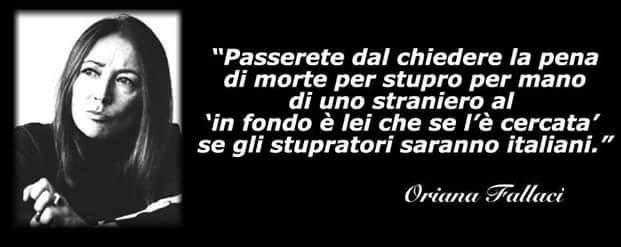 “Passerete dal chiedere la pena di morte per stupro per mano di uno straniero al ‘in fondo è lei che se l’è cercata’ se gli stupratori saranno italiani” – Oriana Fallaci