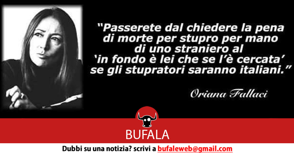 BUFALA La profezia di Oriana: passerete dal chiedere la pena di morte per uno stupratore al dire “La vittima se l’era cercata” se lo stupratore è italiano – bufale.net