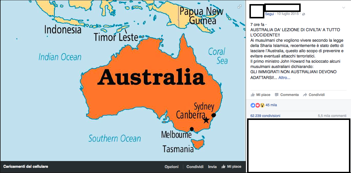 Questo è il NOSTRO PAESE; la NOSTRA TERRA e il NOSTRO STILE DI VITA. E vi offriamo la possibilità di approfittare di tutto questo. Ma se non fate altro che lamentarvi, prendervela con la nostra bandiera, il nostro impegno, le nostre credenze cristiane o il nostro stile di vita, allora vi incoraggio fortemente ad approfittare di un’altra grande libertà australiana: IL DIRITTO AD ANDARVENE. Se non siete felici qui, allora PARTITE. Non vi abbiamo forzati a venire qui, siete voi che avete chiesto di essere qui. Allora rispettate il paese che Vi ha accettati”.
