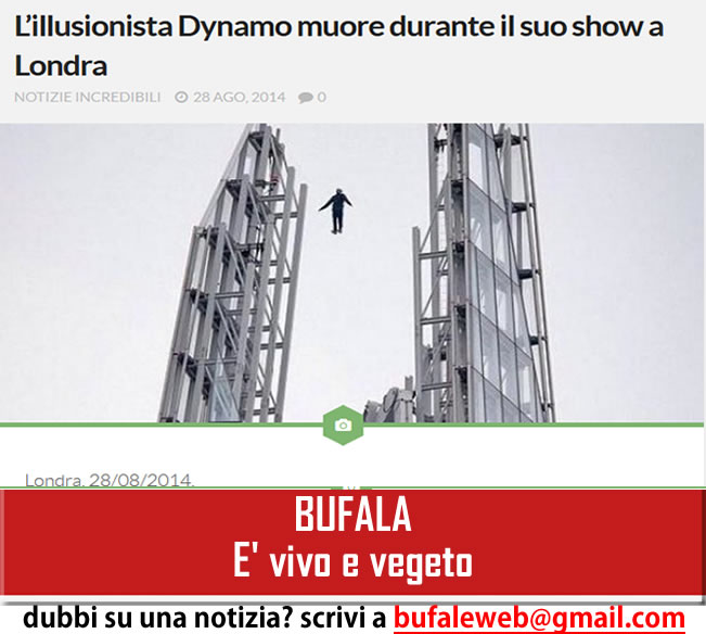 BUFALA L’illusionista Dynamo muore durante il suo show a Londra – bufale.net