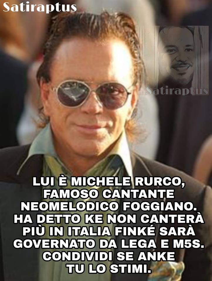 Sì, non è Michele Rurco bensì Mickey Rourke, ma siamo qui perché nuovamente sono piovuti i commenti di quanti non hanno notato la bufala.