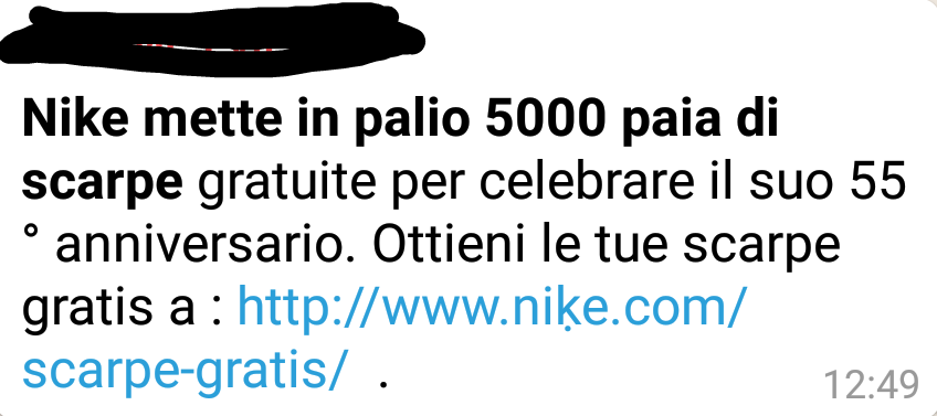 Come già avevamo riportato nei precedenti articoli sulle varie aziende alle quali venivano attribuite offerte inesistenti (guarda il nostro archivio), anche stavolta ci ritroviamo a smentire l’esistenza di uno stock di prodotti disponibili gratuitamente. La Nike, secondo il viralizzatore di turno, avrebbe deciso di festeggiare il suo 55° anniversario regalando 5000 paia di scarpe a quanti correranno a cliccare sul link.