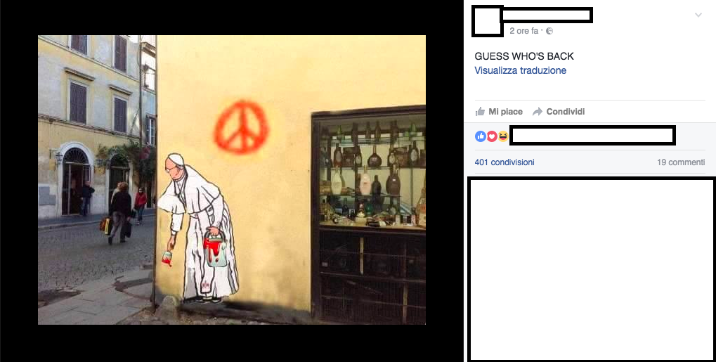 Pertanto in molti hanno festeggiato in queste ore il ritorno del Papa Graffitaro dell’artista Maupal