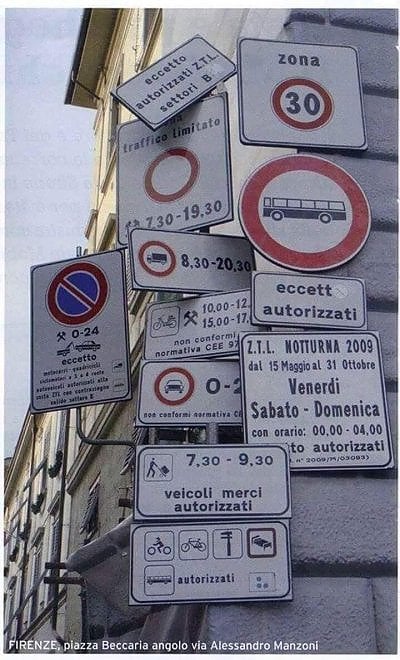 Come ricorda Nove da Firenze in realtà c’è stato, in passato, un problema di elevata e confusionaria cartellonistica intorno alla ZTL, non di quelle proporzioni e risolto nel 2011, motivo per cui nessun rilievo di Street View del 2016 riporterà traccia.