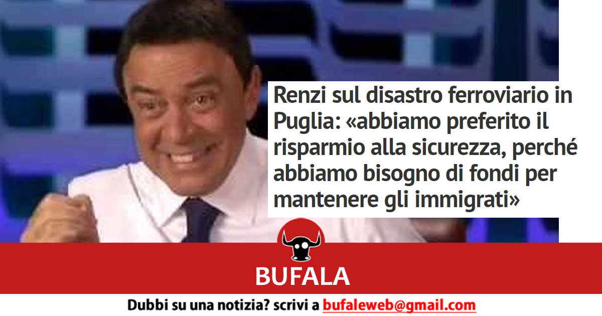BUFALA Renzi sul disastro ferroviario in Puglia abbiamo preferito il risparmio alla sicurezza, perché abbiamo bisogno di fondi per mantenere gli immigrati – bufale.net