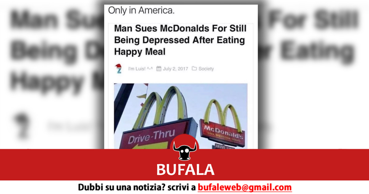 Un uomo ha citato in giudizio McDonald’s perché era ancora depresso dopo aver mangiato un Happy Meal. Si tratta, però, di una vera e propria bufala.