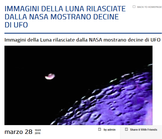 Alcune di queste immagini sono note da anni, frequentemente proposte all’attenzione degli utenti come qualcosa di straordinario a cui la NASA non ha mai saputo (o voluto) dare una spiegazione convincente. E’ proprio così? Ovviamente no, ma vediamo come titola uno dei più famigerati siti di disinformazione sul fenomeno UFO: