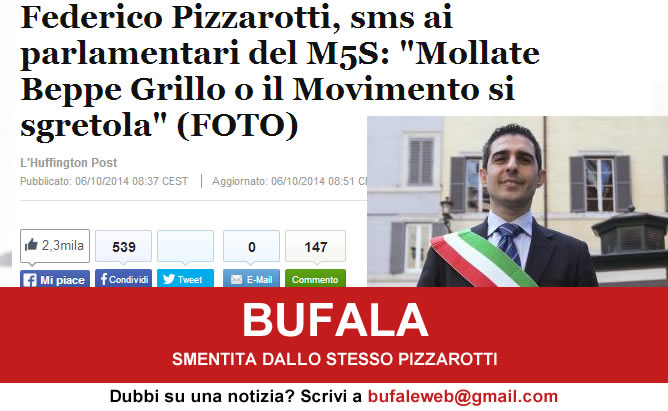 BUFALA SMS M5S Pizzarotti Mollate Grillo o il Movimento si sgretolerà – Bufale.net