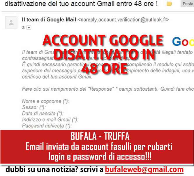 BUFALA TRUFFA – disattivazione del tuo account Gmail entro 48 ore – bufale.net