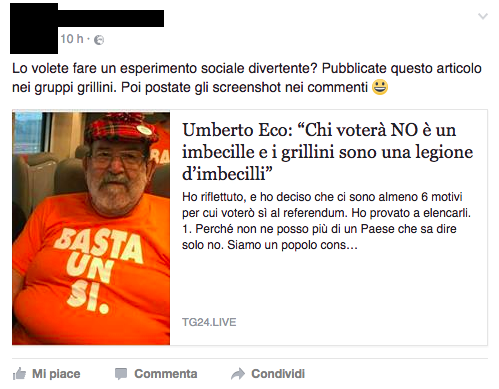 Riflesso che esclude il raziocinio e la riflessione necessaria al “Io Verifico”: il punto 7 era, letteralmente, la self insertion dell’autore della beffa nel testo, che nessuno dei condivisori più livorosi ha notato.